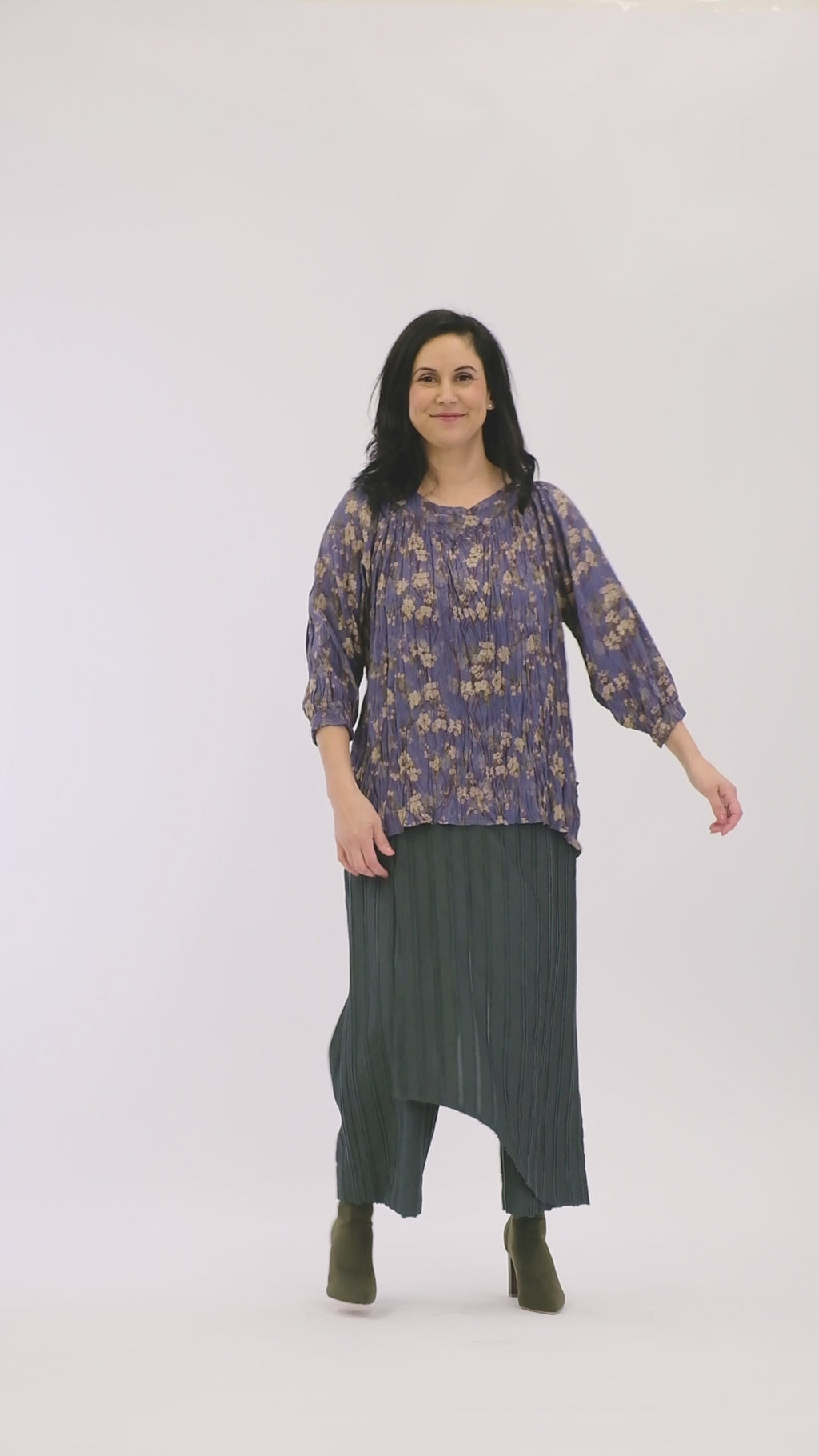 This is a softly structured women’s top designed with gentle volume and a relaxed, flattering silhouette. Featuring a softly gathered neckline and fluid drape through the body, the Surround Top creates movement and softness without bulk. Shown here in Periwinkle Blossom, a true Jellicoe piece, this print brings depth, artistry, and individuality to the style.