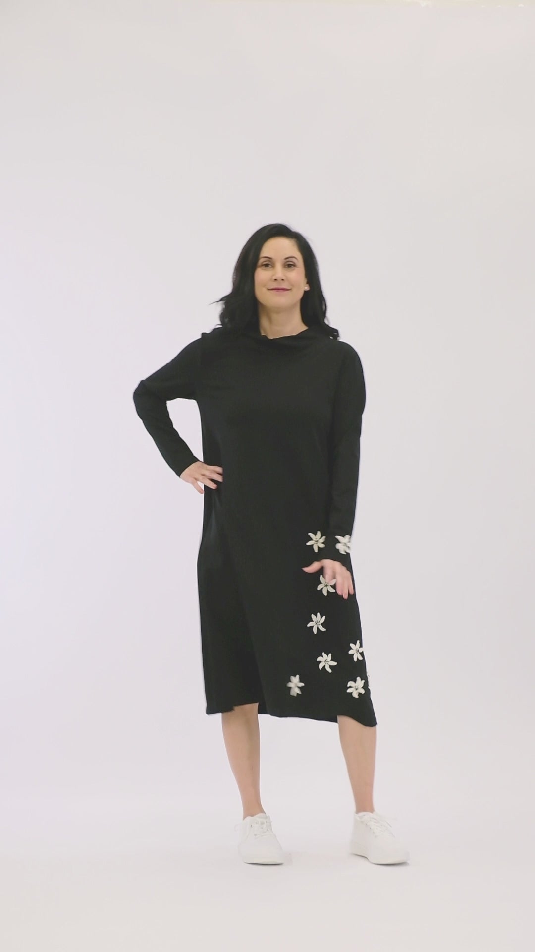 A classic and timeless silhouette, featuring a higher neck but not tight.  This is what you call effortless dressing!